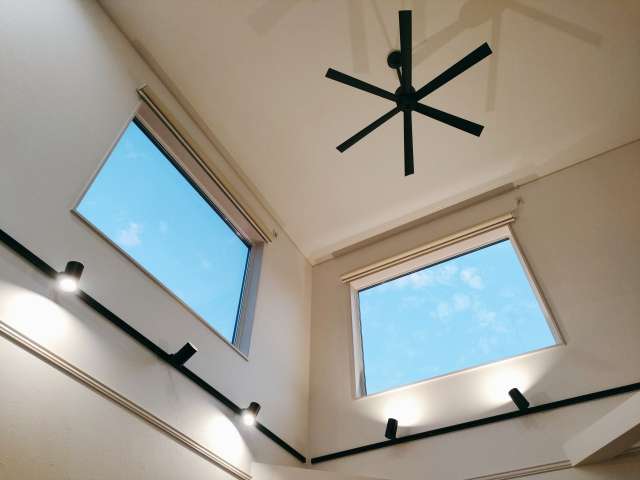 シーリングファンをとりつけることで、空調効率を高めることが期待できます。